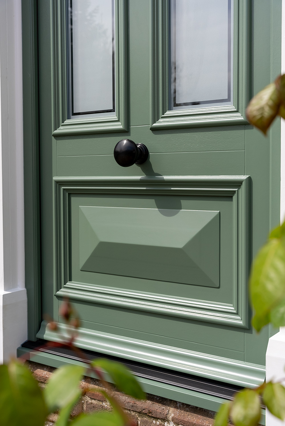 Our Entrance Doors are also available as a Town House door with no external handle, as escutcheon plate at eye level which replicates the look of a traditional mortice lock and a centre pull knob.